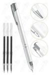 Artlantis Beyaz Kısa Boylu Metal Tükenmez Kalem 1 Adet Yedek Uçlu Mavi Renkli Cep Kalemi Tükenmez Basmalı Mikro 1001 Mekanizmalı