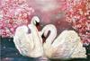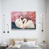 Tablo Life Beyaz Kuğular Yağlı Boya Dokulu Tablo 60X90 Siyah Çerçeveli