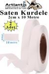 Artlantis Beyaz Kurdele Saten 2 Cm 10 Metre 2 Adet Saten Kurdela Parlak Hediye ve Süsleme Şeridi Süs Paketleme Çiçek Saç El