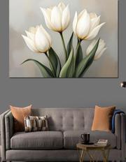 Beyaz Lale Buketi Dekoratif Kanvas - Mdf Ahşap Tablo