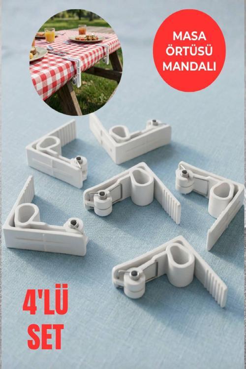 Open Home Concept Beyaz Masa Örtüsü Mandalı 4’lü Set – Kaymaz, Rüzgara Dayanıklı, Piknik & Balkon Masa Sabitleyici