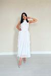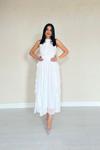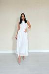 Beyaz Önü Büzgülü Fırfırlı Elbise