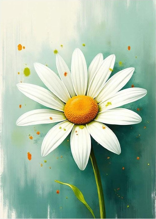 Beyaz Papatya Çizimi Mdf poster 25cmX 35cm