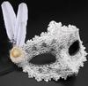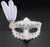 Beyaz Renk Tüylü Dantelli Gözleri Taşlı Balo Parti Maskesi