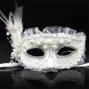 Ayder Beyaz Renk Yandan Tüylü İnci İşlemeli Taşlı Dantelli Parti Maskesi 17x12 Cm (4915) Go-53-vice/(1395)