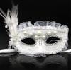 Beyaz Renk Yandan Tüylü İnci İşlemeli Taşlı Dantelli Parti Maskesi, balolar, maskeli partiler veya özel geceler gibi özel günlerde zarif ve göz alıcı bir görünüm elde etmek isteyenler için mükemmel bir seçimdir. Beyaz dantel kaplaması, zarif incileri ve yandan sarkan tüyleri ile bu maske sizi partinin en şık ve zarif konuğu yapacak.