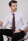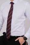 Etikmen Beyaz Saten & Bordo Çizgi Desen Hediye Kutulu Gömlek Kravat Seti