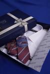 Beyaz Saten & Bordo Çizgi Desen Hediye Kutulu Gömlek Kravat Seti