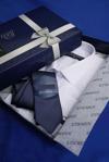 Beyaz Saten & Lacivert Düz Hediye Kutulu Gömlek Kravat Seti