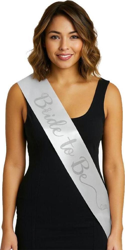 Gelin adaylarının bekarlığa veda partilerinde zarafetle parlaması için tasarlandı! Beyaz saten kumaş üzerine el yazısı stilinde, italik ve parlak gümüş renkte yazılmış "Bride To Be" ifadesiyle bu kuşak; hem sade hem şık bir duruş sergiler.