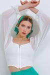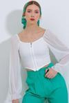Beyaz Şifon Önü Fermuarlı Bluz 0496
