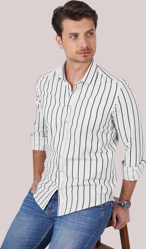 Beyaz Siyah Çizgili Slimfit Erkek Gömlek