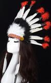 Beyaz Tüylü Siyah Kırmızı Büyük Hintli Kızılderili Başlığı