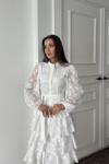 Beyaz Valonlu Şeritli Kat Kat Elbise