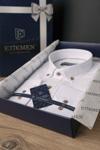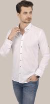 Etikmen Beyaz Yaka Düğmeli Keten Slimfit Erkek Gömlek