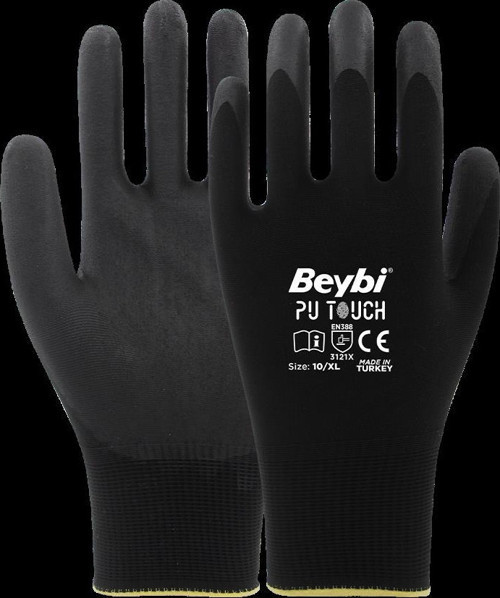 Beybi 7 Beden 12li Paket Poliüretan Kaplı Pu Touch Siyah Montaj Eldiven EN388 (3121X)