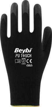 Beybi 9 Beden İş Eldiveni Poliüretan Kaplı Pu Touch Siyah Montaj Eldiveni (12 Li Paket) 8681780022516