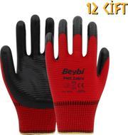 Tanım: Polyester iplikten örülmüş ve nitril ile yarı kaplanmış iş eldiveni