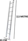 Hafif ve dayanıklı alüminyum malzeme kullanılarak üretilmiş, uzun ömürlü kullanım sunar Tek parça tasarımı sayesinde kolayca taşınabilir ve saklanabilir, pratik bir kullanım sağlar 2 5 metre yüksekliği ile çeşitli yüksekliklere ulaşım imkanı verir, işlerinizi hızlı ve güvenli bir şekilde tamamlamanız için idealdir
