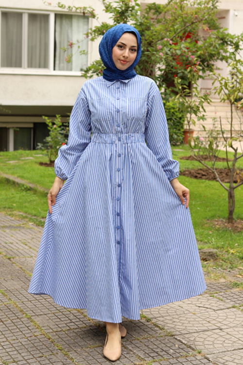 Moda Palmiss Beymen Çizgili Elbise Mavi