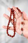 Beyzi Tane Koyu Ton Toz Kehribar Tesbih, Tesbihimiz orta boy ölçülerde yerli üretim olarak kendi atölyemizde el işçiliği ile üretilmiştir.