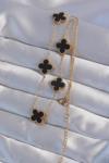 BFS 316L Çelik Gold Renk Siyah Mineli Yonca Kolye
