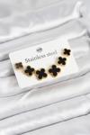 BFS 316L Çelik Gold Siyah Renk 3 Boy Yonca Küpe Seti