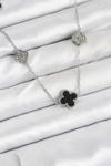 BFS 316L Çelik Zincir Gümüş Renk Siyah ve Zirkon Taşlı Yonca Kadın Kolye