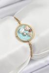 Pratikoba BFS 316L Çelik Zincir Turkuaz Mineli Sanatsal Portre İnci Detaylı Çiçek Model Gold Renk Kadın Bilekl