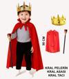 BFS Çocuk Kral Kostüm Seti – Kırmızı Pelerin, Taç ve Asa (90 cm)