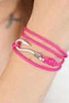 Pratikoba'nın zarif tasarımıyla dikkat çeken bu bileklik, şıklığı ve modernliği bir araya getiriyor. Fuşya rengin enerjisi ve gümüş metal kancaların zarafetiyle tasarlanmış bu çoklu bileklik, her türlü kıyafetle uyum sağlar.