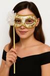 BFS Lüks Taşlı Saplı Maskeli Balo Maskesi Beyaz Renk 35 cm
