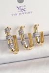 BFS Pirinç Gold Renk 3'Lü Halka Model Gümüş Zirkon Taş Detaylı Kadın Kombin Küpe