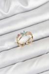 BFS Pirinç Gold Renk Zirkon Taşlı Mavi Çiçekli Kadın Yüzük
