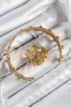 Altın renginin göz alıcı parlaklığı, bileklik ve yüzük setine sofistike bir dokunuş katar.