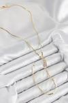 BFS Pirinç Zirkon Taşlı Ezme Zincirli Model Gold Renk Y Kolye