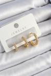 BFS Pirinç Zirkon Taşlı Halka Model Gold Renk 3'lü Çift Kadın Küpe Set
