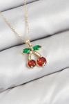 BFS Pirinç Zirkon Taşlı Kiraz Model Gold Renk Kadın Kolye