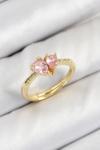 BFS Pirinç Zirkon Taşlı Pembe Kalp Model Gold Renk Kadın Yüzük