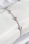 BFS Pirinç Zirkon Taşlı Pembe Kalp Model Gümüş Renk Kadın Bileklik
