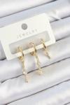BFS Pirinç Zirkon Taşlı Sallantılı Model Gold Renk 3'lü Çift Kadın Küpe Set