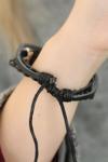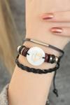 BFS Siyah Renk Elif Vav Tasarım Çoklu Deri Bayan Bileklik
