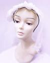 BFS Uzun Duvaklı Üstü Beyaz Çiçekli Parti Tacı