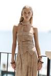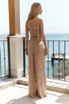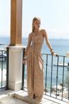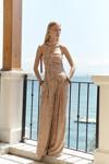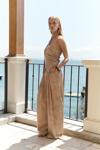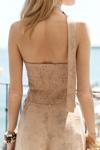 | Straplez sırtı gipeli, önde üçgen detaylı keten crop. |