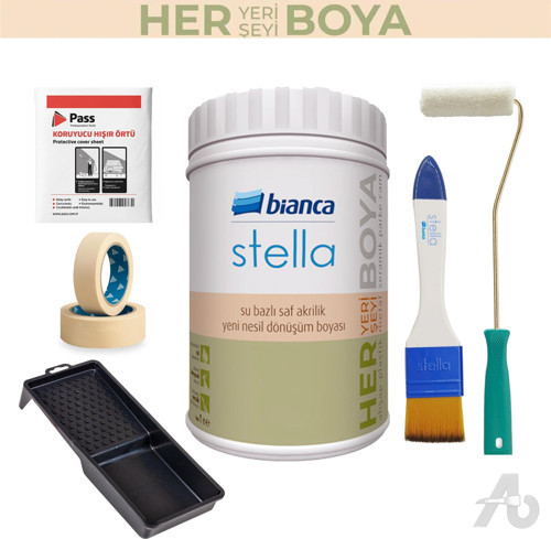Bu set, ev içinde dolap, komodin, konsol, vestiyer, TV ünitesi gibi mobilyaların boyanarak yenilenmesi için gerekli temel ekipmanları bir araya getirir. Bianca Stella su bazlı saf akrilik boya; ahşap, MDF, suntalam ve mevcut boyalı yüzeylerde kapatıcı, silinebilir ve dekoratif bir yüzey elde etmeye yardımcı olur. Setin içeriğinde yer alan rulo, ipek fırça, boya kabı, maskeleme bandı ve zemin koruma örtüsü; boyama sırasında hem uygulamayı hem de çalışma alanı kontrolünü kolaylaştırır.