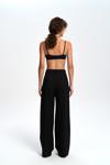 Bele oturan, paçası bol, yüksel bel ve rahat formda. Pileli, cepli palazzo pantolon.