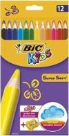 Bic Kids Supersoft Yumuşak Kuru Boya Kalemi 12 Renk + Jumbo Kalemtraş