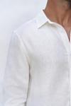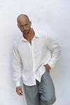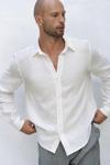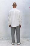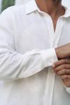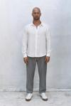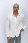 Oversize kesim, klasik yaka keten karışımlı erkek gömlek.Çift düğmeli manşetli uzun kol. Ön düğme kapamalı.