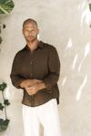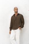 MAI STUDIOS CO. Bice Kahve Keten Oversize Erkek Gömlek