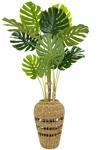 Yoğun yapraklı yapay Montera bitkisinden oluşmaktadır. Zemin kaplaması doğal tamburlanmış beyaz taşlardan oluşmaktadır. Yaprak Malzemesi : 1.kalite ithal Monstera bitkisi yaprakları kullanılmıştır.Birçok yapay bitkiye göre çok daha gerçekçi görüntüsü vardır. Saksı Malzemesi : 1.Kalite ithal el yapımı hasır saksı ve saksı içi metal iskelet ile desteklenmiştir. Yoğun ve yumuşak dokulu yaprakları ile gerçekçi bir görünüm elde edilmiştir. 3 gövde ve 10 adet buyuk boy Mosntera yaprağından oluşmaktadır bitki gövdesinde doğal muz lifleri kullanılarak doğallık arttırılmıştır. Ürün fotorafta göründüğü gibi montajı yapılmış olarak gönderilmekte olup siz değerli müşterilerimiz sadece yapraklarını şekillendirmeniz yeterli olacaktır. Evinize veya ofisinize gerçekçi görünümü ile canlılık ve enerji katacaktır. Bitki ölçüsü : Saksı Dahil 180 cm Saksı ölçüleri: Çap : 40cm Yükseklik: 50 cm